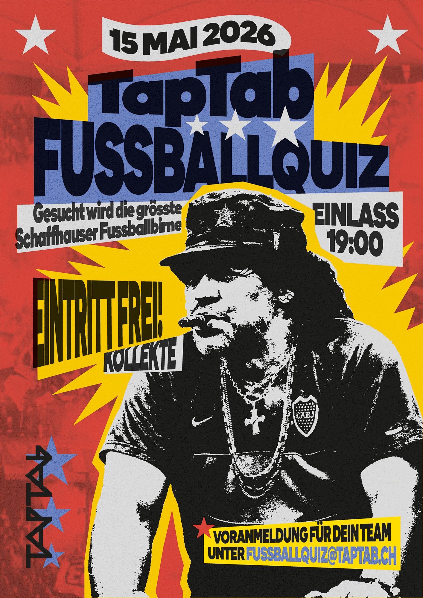 Von kniffligen Bilderrätseln über spannende Fragen zur Fussballgeschichte bis hin zu aktuellen Themen ist alles dabei. Kurz: ein Abend für alle, die Fussball lieben – oder zumindest so tun, als hätten sie den Durchblick. Aber seid gewarnt: Wir graben auch im tiefsten Nischenwissen und lassen garantiert keine Skurrilität aus. Gespielt wird in Teams. Sprecht euch also ab und meldet euch gemeinsam an – pro Team sind maximal vier Personen erlaubt.