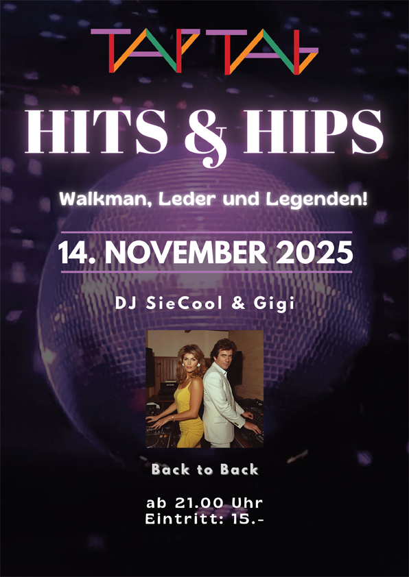 HITS & HIPS ist die Party für alle, die zu den größten Pop- und Rock-Hymnen der letzten Jahrzehnte abfeiern wollen. Ob 80s, 90s, 2000er oder aktuelle Chartbreaker – wir bringen den Sound, der die Generationen verbindet und die Hüften in Schwung bringt. Von Depeche Mode oder Muse, von David Bowie oder Foo Fighters, von Red hot chili peppers zu Cure oder Clash bis Talking Heads – hier kommt «Back 2 Back» alles auf den Plattenteller, was du liebst und laut mitsingen kannst.