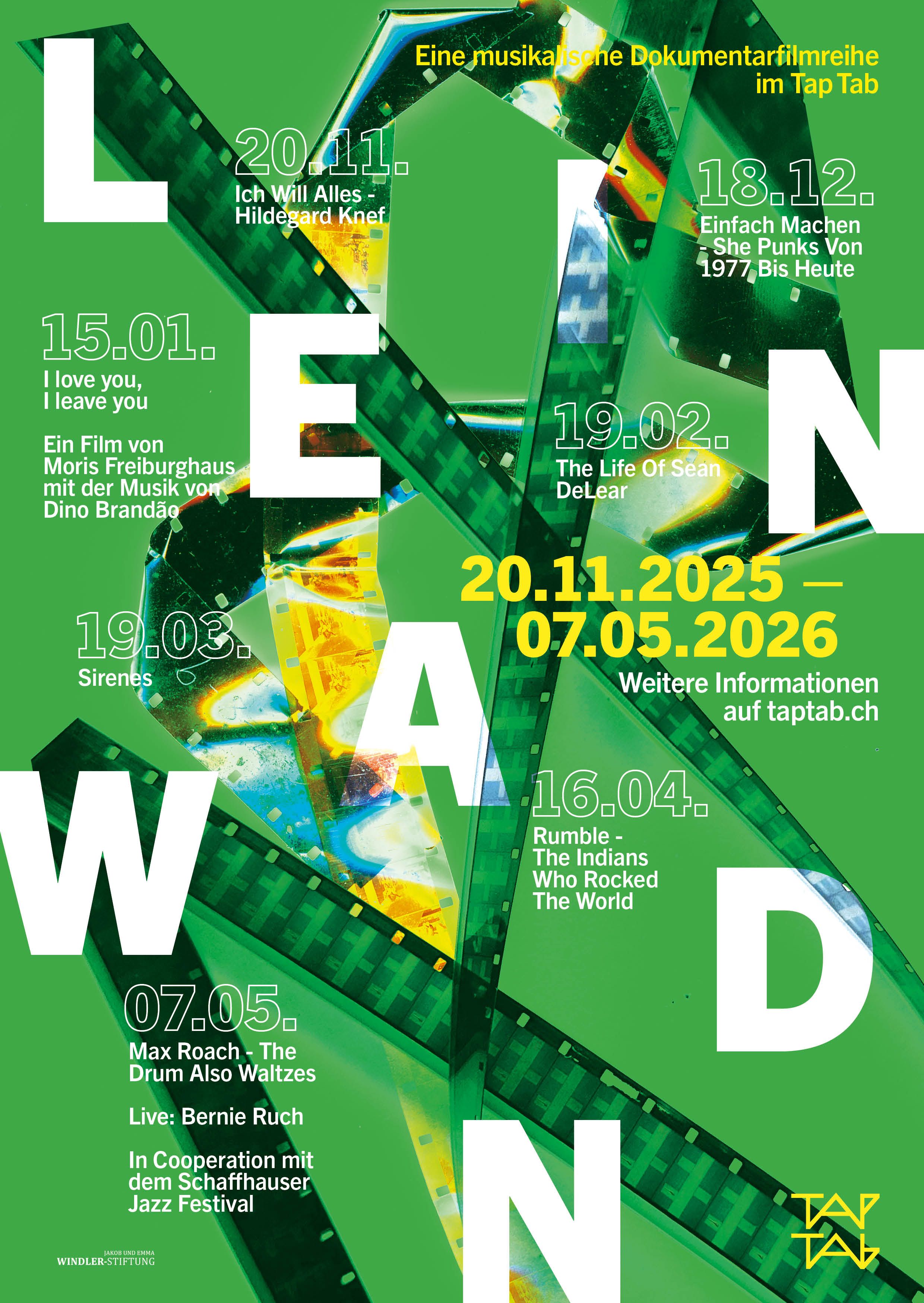 Einmal im Monat zeigen wir im Rahmen der LEINWAND Filmreihe ausgewählte Musikdokus, die Subkulturen, Diversität und marginalisierte Perspektiven sichtbar machen. Von Punk bis Pop, von Beirut bis Berlin. Jede Vorführung öffnet den Raum für neue Klänge, Geschichten und Blickwinkel. Die Reihe läuft über die ganze Saison und verbindet Kino, Musik und Community mitten in Schaffhausen.