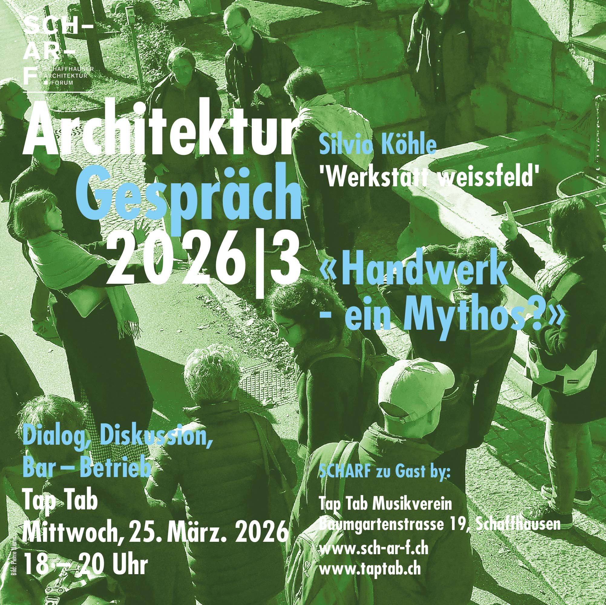 In der traditionellen Gesprächsreihe des Schaffhauser Architektur Forums über Architektur, Städtebau und Baukultur im TapTab Schaffhausen, folgt bereits das dritte Gespräch im neuen Jahr. Nach der Sommerpause wird die Reihe im Herbst weitergeführt. Beispiele aktueller, öffentlich interessanter Projekte, Konzepte, Methoden und Techniken werden im Dialog pointiert und transparent vermittelt und veranschaulichen die Haltung und das Verständnis der eingeladenen Fachpersonen in Bezug zum vieldiskutierten Qualitätsbegriff.