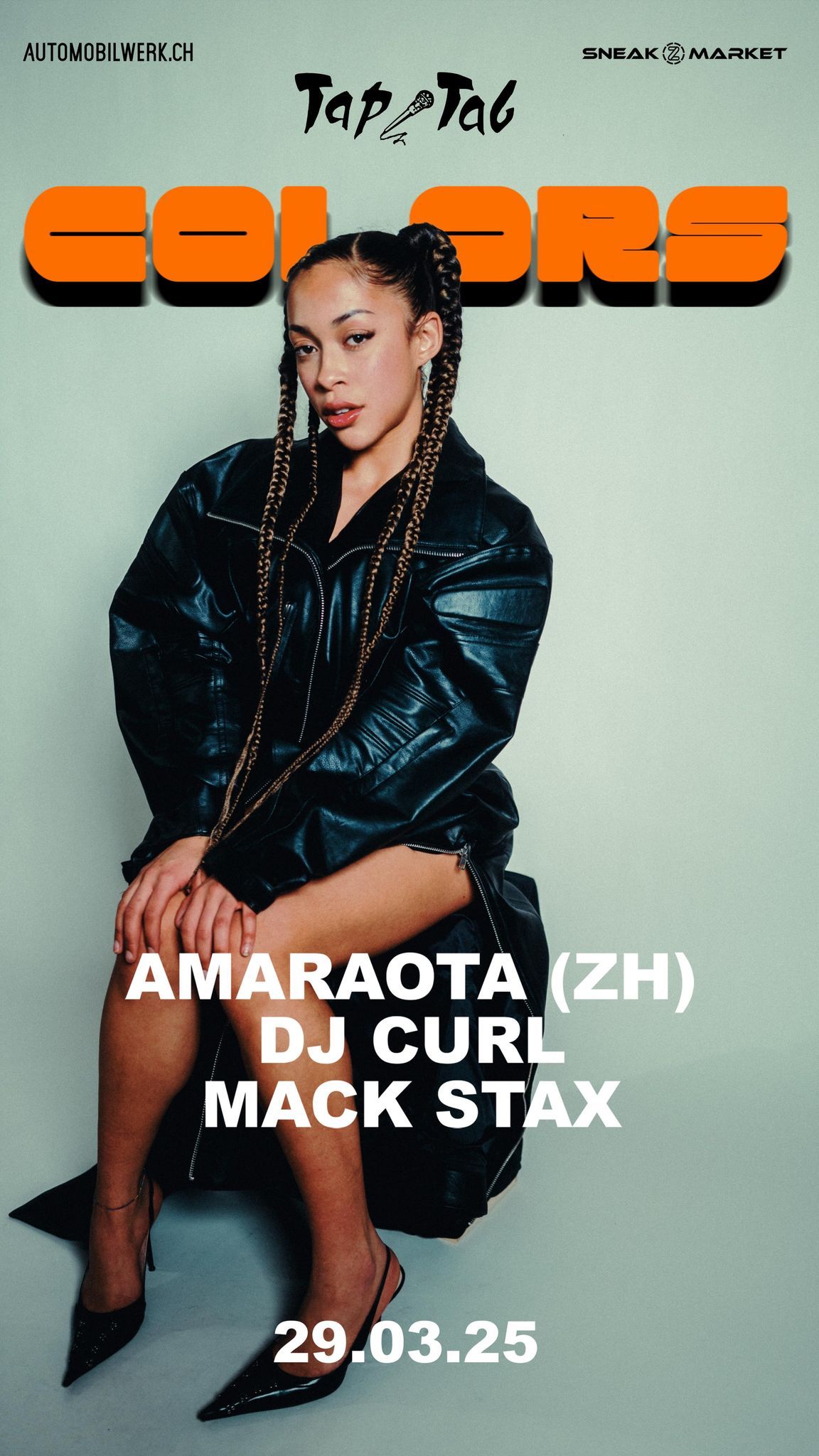 Bunte Mischung by COLORS. Wie immer gibts den fettesten Mix aus der urbanen Plattenkiste und die heissesten Clubbanger deiner Afrobeats-Playlist. DJ CURL & MACK STAX sind die Residents und wissen bekanntlich, worauf es ankommt. Zu Gast in dieser Ausgabe ist AMARAOTA, eine der talentiertesten und erfolgreichsten Newcomer-DJs aus Zürich. Mit ihrem Mix aus Hip Hop, Afrobeats, Amapiano, Dancehall und R&B begeistert sie regelmässig die Crowd bei ihren Resident-Gigs im GONZO- und LONGSTREET-Club. Ausserdem zählen regelmässige Gastspiele in bekannten Locations wie dem KAUFLEUTEN oder dem EXIL, sowie an der national bekannten Partyreihe «BLOCK PARTY» in Basel zu ihrer Vita. Und nun dürfen wir sie zum ersten Mal im legendären Tap Tab-Musikraum willkommen heissen. Gonna be hot - Ladys!