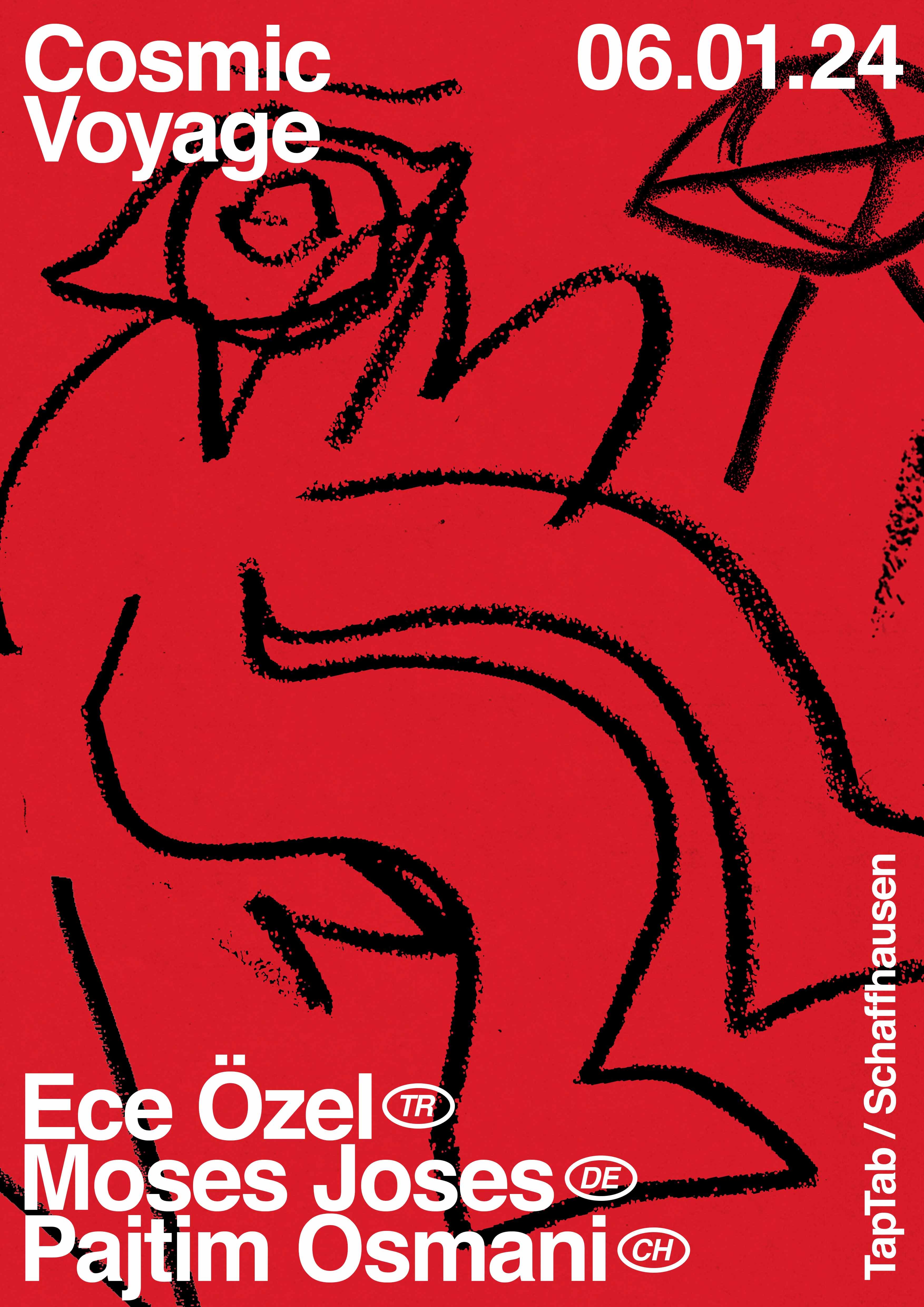 In dieser Ausgabe leading Headliner: ECE ÖZEL aus Istanbul! ECE ist Resident-DJ des ARKAODA und Mitbegründerin von MÜSTESNA RECORDS. Sie unterhält nebst ihren eigenen Partys aber auch einen Podcast unter dem Namen ÖZEL ZEVKLER, in welchem sie bereits einigen Live-Acts und DJs zu mehr Aufmerksamkeit verhalf. Aufgewachsen in der istanbuler Punk-Szene verschachtelt sie ihre Eindrücke mit der Elektronischen Musik zu einem eigensinnigen, surrealen Mix aus Electro, Disco, Leftfield Electronics, New Wave und Spitzen aus Techno. DEKMANETL, BOILER ROOM, diverse Festivals und Clubs wie der GOLDEN PUDEL, das RENATE oder der SALON DES AMATEURS kamen bereits in den Genuss ihrer «dark and shiny» Extravaganz! Who’s next? Klar: Tap Tab! Und so lädt COSMIC VOYAGE abermals zum Tanz unter Freunden!