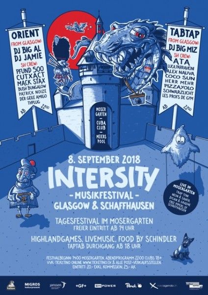 Das clubübergreifende Schaffhauser Musikfestival «Intersity» stellt auch in der aktuellen Ausgabe den Austausch mit einer Stadt ins Zentrum – mit Glasgow. Darüber hinaus feiert man mit Schottland gleich noch einen ganzen Landesteil: reiche Kultur, Männer in Röcken, grandiose Comedians, musikalische Kriegsinstrumente, die auch in Friedenszeiten foltern *zwinkersmiley*, mit Innereien, Zwiebeln, Hafermehl gefüllte Schafsmägen als Delikatesse, einer regen Musikszene in den Pubs und in den Clubs, die sich am englischen Style ebenso bedient, wie sie sich davon abgrenzt – Schottland ist weird und cool. Passt also bestestens zu TapTab. Hier starten unsere Mannen den Warm-up im Durchgang, später flankieren drinnen die Residents den Glaswegian Big Miz, Headliner der Nacht. Der DJ/Producer aus der schottischen Hafenmetropole am Clyde ist eine bedeutende Figur in Glasgows House- und Technoszene mit weitem Horizont und grosser Präsenz. Schottischer elektronischer Underground im TapTab – go for it! bzw. rachaibh air a shon!