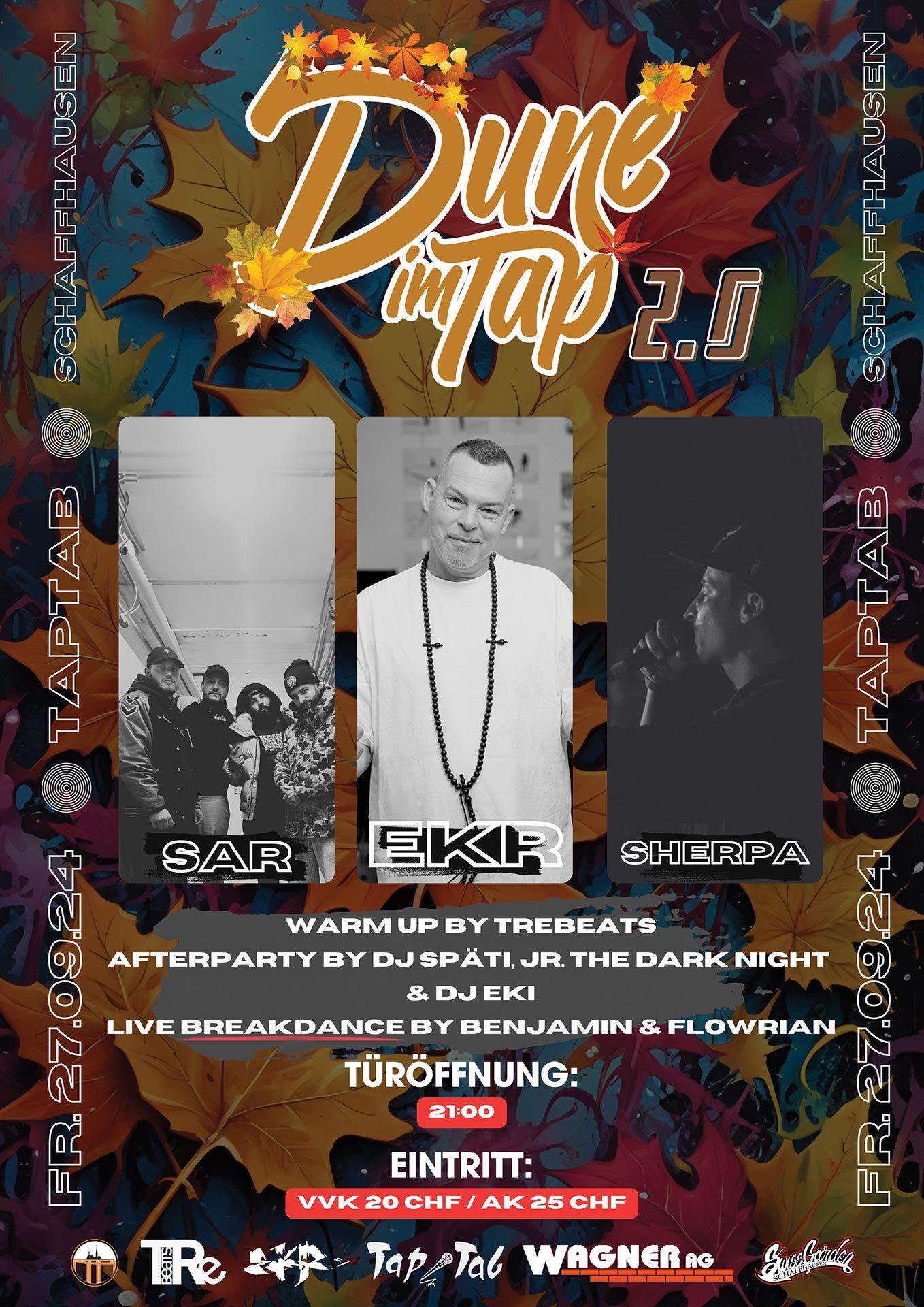 Es wird straight fire, real Hip-Hop back in town! Die Bühne wird lit mit den 4 Elementen des Hip-Hops: Breaking, MCs, Graffiti und DJing – alles von und für Schaffhausen, mit ‘ner guten Prise Schweizer Hip-Hop-Legende.