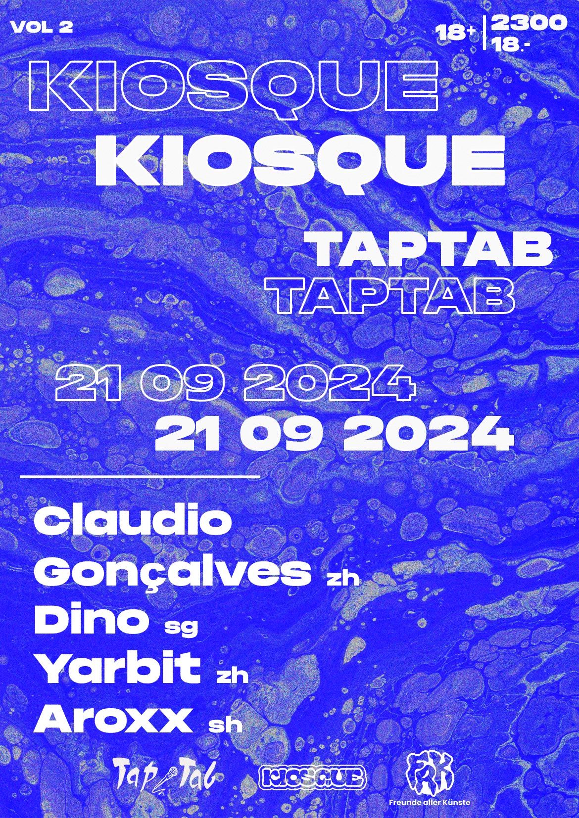 Nur rumstehen und mit dem Fuss wippen ist auch bei der lang ersehnten, zweiten Ausgabe der KIOSQUE keine Option! Oder sollten wir sagen strengstens verboten? DINO & AROXX werden den Abend mit einem harmonierenden b2b aus Ro-Minimal und treibenden Beats einläuten und ihr könnt dabei den imaginären roten Teppich schon mal ordentlich herbürsten, ehe das Zepter an den Locken wickelnden Headliner CLAUDIO GONÇALVES aus Zürich weitergereicht wird. Seinem Bann ist es nur schwer zu entkommen und erhötes Transpierieren ist wärend seiner Shows keine Seltenheit. Drum traut eurem Deo-Stick und stay hydrated! Die Sahnebehaubung und Krönung des Abends übernimmt dann der hiesige Groove-Dealer YARBIT mit nicht weniger Energie unter der Kirsche. Kommt rum und lasst euch treiben bis es hell wird!