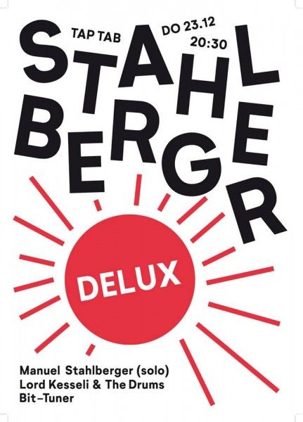 Er ist so etwas wie ein wortgewandter Buster Keaton: Der grosse Ostschweizer Lakoniker und Alltagsabsurditäten-Beobachter Manuel Stahlberger. In diesem quasi weihnächtlichen Package beehrt er mit Giggs & Gags bzw. etlichen seiner St. Galler Gspändli unsere Bühne. Stahlberger spielt, singt (und erzählt) solo. Die Spacerocker von Lord Kesseli and the Drums fahren ihre verlangsamte, elektronische Clubmusik auf: synthetische Science Fiction mit analoger Wut im Bauch. Wie das tönt? Als würde eine pechschwarze Seifenblase irgendwo im Universum mit einem goldenen Planeten kollidieren, als zöge man sich den feinen Staub, der auf die Erde regnete, die Nase hoch. Bit-Tuners an allerhand elektronischen Gerätschaften live hergestellte apokalptische Acid-Dub-Adventures in Sound sorgen zudem für nickende Köpfe auf dem Floor. Aus der Gerüchteküche drang bereits, dass sich die ganze Stahlberger-Band(e) zehn Tage vor dieser «Delux»-Edition trifft, um an neuem Kram zu werkeln. Wär natürlich nicht das schlechteste der Weihnachtsgeschenke, wenn sie uns alle zusammen noch was auf die Ohren geben täten.