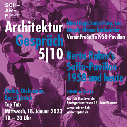 Das Schaffhauser Architektur Forum veranstaltet von September 2022 bis Juni 2023 eine monatliche Gesprächsreihe über Architektur, Städtebau und Baukultur im TapTab.