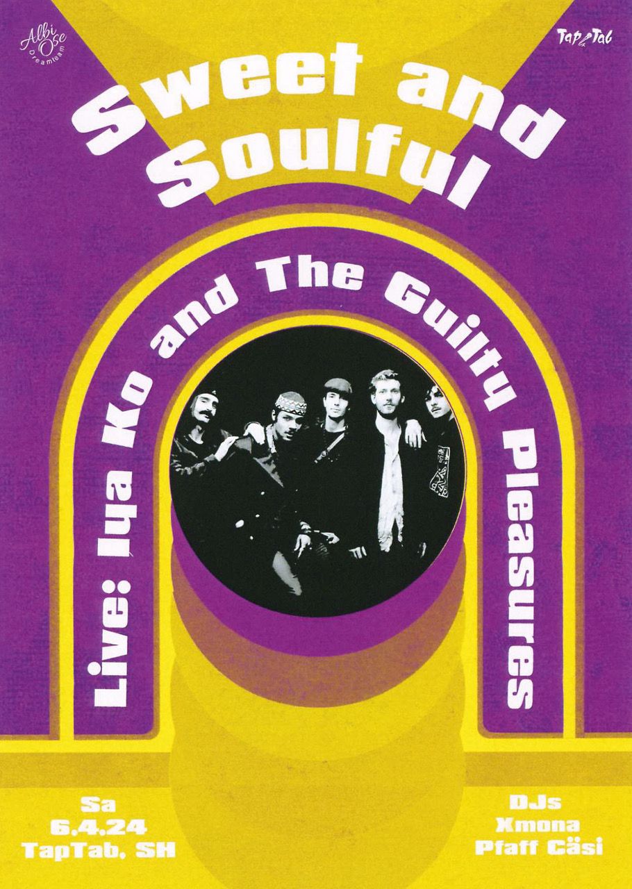 Mit IYA KO & THE GUILTY PLEASURES spielt in dieser SWEET & SOULFUL Ausgabe eine noch recht junge Band auf, welche in ihrer kurzen Geschichte bereits (verdientermaßen) Höhenluft auf dem Cully Jazz & Montreux Jazz Festival schnuppern durfte! Die bisher veröffentlichten EPs der Lausanner Combo «VELOURS Vol. 1 & 2» sind eine Mischung aus Neo-Soul und HipHop gespickt mit feinen Einflüssen von Pop, Afrobeat und Jazz. Dabei dreht sich ihr Sounduniversum immerzu um die sanfte und hypnotisierende Stimme von IYA KO und bildet in Gänze einen explosiven und transzendenten Cocktail aus Fest und Sinnlichkeit. Ihr Geheimnis liegt dabei in der engen Verbindung zwischen Wort und Groove und lässt die Tagträume auf der Bühne zur Wirklichkeit werden. Man darf durchaus gespannt sein, welch Perlen hier noch das Licht der Welt erblicken! Ein kleiner Knicks und ein grosses «Chapeau!» voller Vorfreude auf einen goldigen Abend voller positive Vibes!