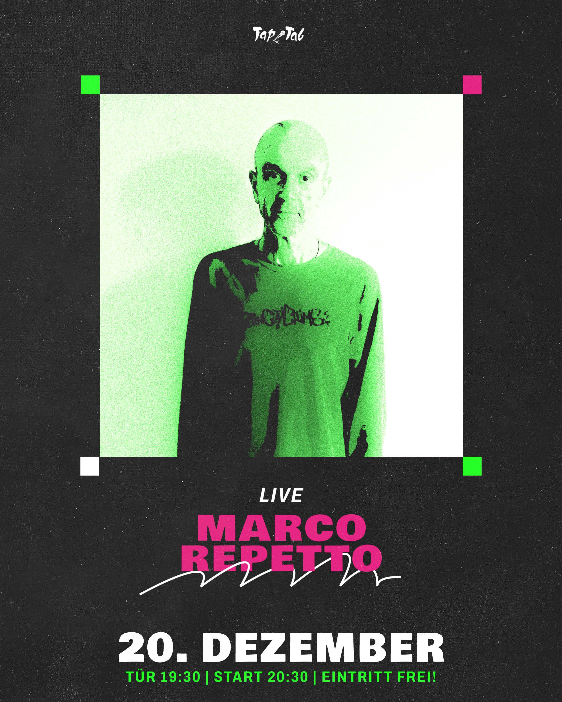Marco Repetto ist ehemaliger Schlagzeuger und Gründer der Band GRAUZONE (man mag den Eisbär Song sicher schon mal gehört haben). Seit 1988 widmet sich der Autodidakt mit grosser Begeisterung voll der elektronischen Musik und wie bereits 1977 mit Punk Rock, war er ein Pionier des Aufbruch einer neuen musikalischen Bewegung. Seit nunmehr 36 Jahren produziert er sphärische, hypnotische, psychedelische bis hin zu technoide elektronische Klangstrukturen. Immer schön abseits von kommerziellen Tendenzen. Seine Punk Rocker Vergangenheit lebt noch zu 100% in ihm, Marco fühlt sich als musikalischer Rebell , ein Rebell für immer! Schon immer engagierte sich Marco mit seiner Musik als Mittel für den Erhalt und Schutz der Natur, in den letzten Jahren insbesondere stark für die Wölfe. Und ganz speziell kümmert er sich an diesem besonderen Abend um das Wolfrudel welches sich im TapTab zum grossen Tanz versammelt hat.