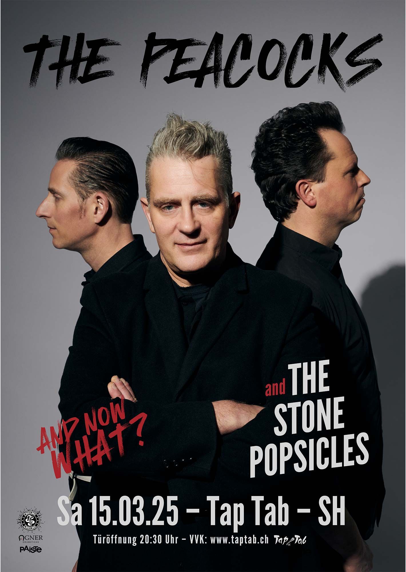 Von Tromsø bis Granada, von Galway nach Kiev, von Rimini nach St. Petersburg. Natürlich mit Zwischenstops für Konzerte auf dem Weg. Als Schülerband 1990 in Stammheim, Zürich gegründet, tourten THE PEACOCKS seither um die halbe Welt und haben 10 Studio Alben, diverse Singles und Best Of Compilations veröffentlicht. Im November 2024 ist das aktuelle Werk «And Now What?» auf dem Nürnberger Label Concrete Jungle erschienen. Und nun, treten die Herren endlich mal wieder im TapTab in Erscheinung. Die Vorfreude ist gross, denn diese Band hat reichlich Geschichten zu erzählen und hat die Bühnen mit unzähligen Legenden geteilt (ausser Fats Domino und The Clash), aber dafür mit der Augarten Blues Band. Wir wollen wissen wie es ist einen Nummer 1 Hit in Japan zu haben und wie der Sound klingt, den die Londoner Underground Avantgarde der 80er Jahre schon so sehr gefeiert hat. Nur eben perfektioniert, modern und aktuell! Und ihr fragt euch: And now what? Holt euch Tickets und kommt vorbei! Denn es heisst: Let’s get wild!