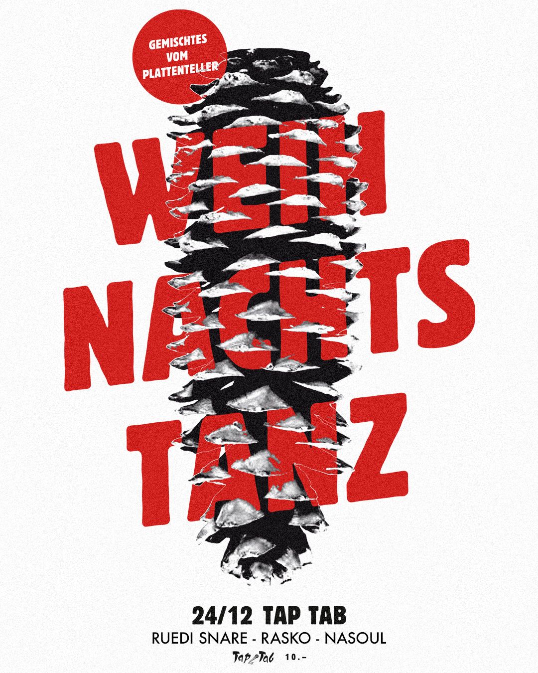 Nach all dem Gemampfe und Geschnatter im Familienschluuch wird’s aber höchste Zeit, die Pfunde schwingen und die Seele baumeln zu lassen! Für den Soundtrack zum Christmas-Afterworkout sorgen unsere hoch geschätzten Discjockeys RUEDI SNARE, NASOUL & RASKO; den Verdauungswurzelextrakt gibt's wie gewohnt an der Theke. Also eigentlich alles wie gewohnt und wie der Brauch es verlangt. Fehlt nur das mal wieder wirklich alle Gspöndli zusammenkommen, dann wird’s auch garantiert eine «Unstille Nacht», wie wir sie gern haben! Und damit «Frohe Ostern, oder watt?!»